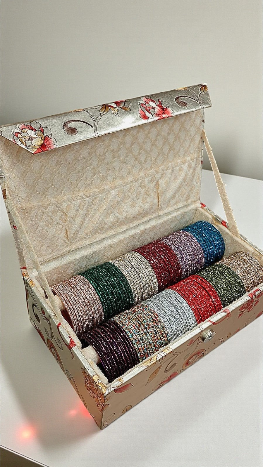 Elevate your jewellery collection with this stunning Indian Glass Stone Combo Box, featuring 12 dozens of vibrant glass bangles in 12 beautiful colours. Perfect for daily wear, festive styling, or bridal trousseau, this combo offers unmatched value, elegance, and versatility.