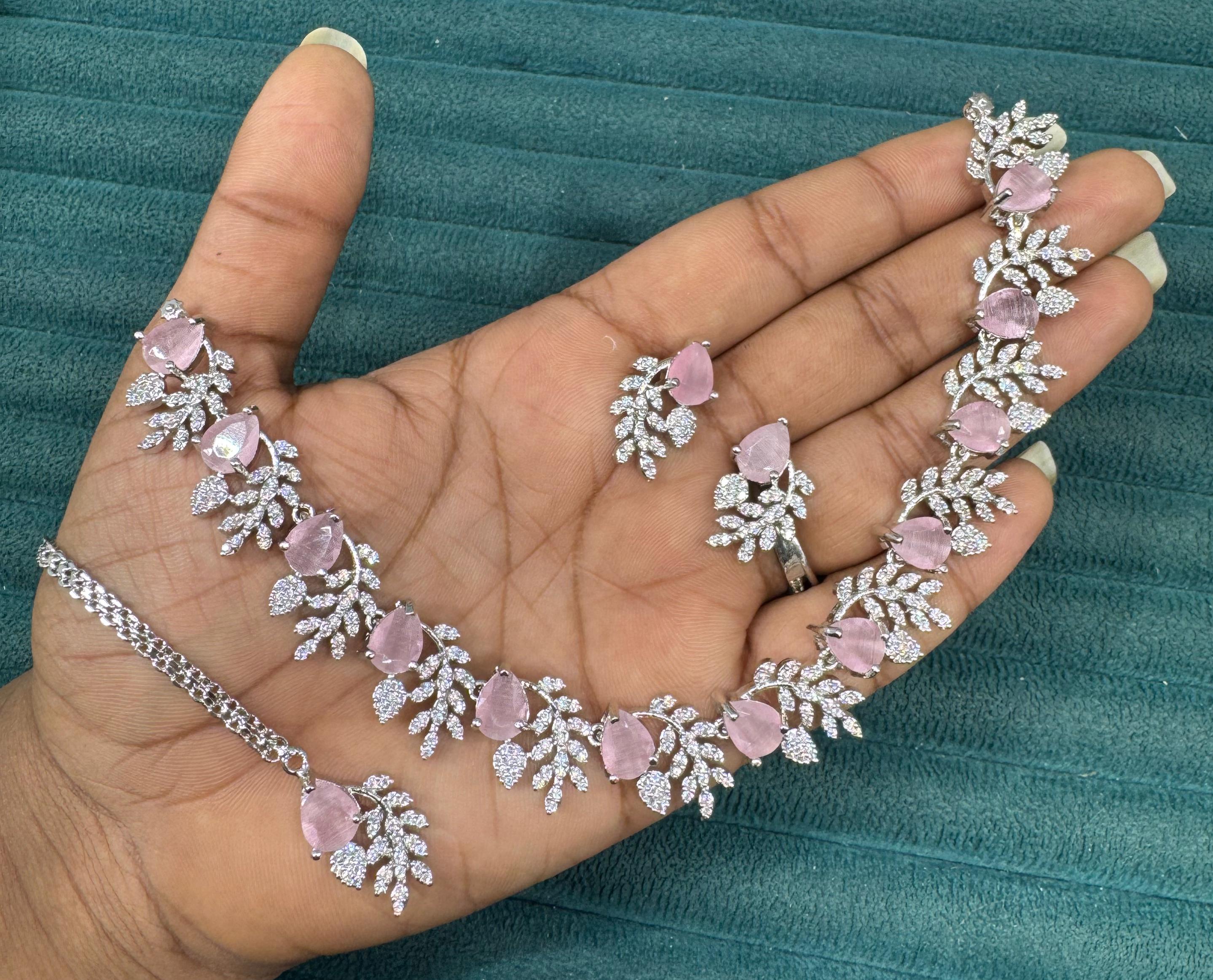 Elevate your style with this stunning Multicolor Silver Stone Diamond Necklace Set, crafted with sparkling cubic zirconia diamonds and vibrant multicolor teardrop stones. The elegant leaf-style design gives it a luxurious and graceful look, perfect for brides, partywear, and festive occasions.