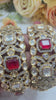Elevate your style with this openable kundan bangle pair, crafted in a luxurious gold-tone finish. The design features a stunning blend of sparkling kundan stones and bold red square gemstones, creating a regal statement piece.