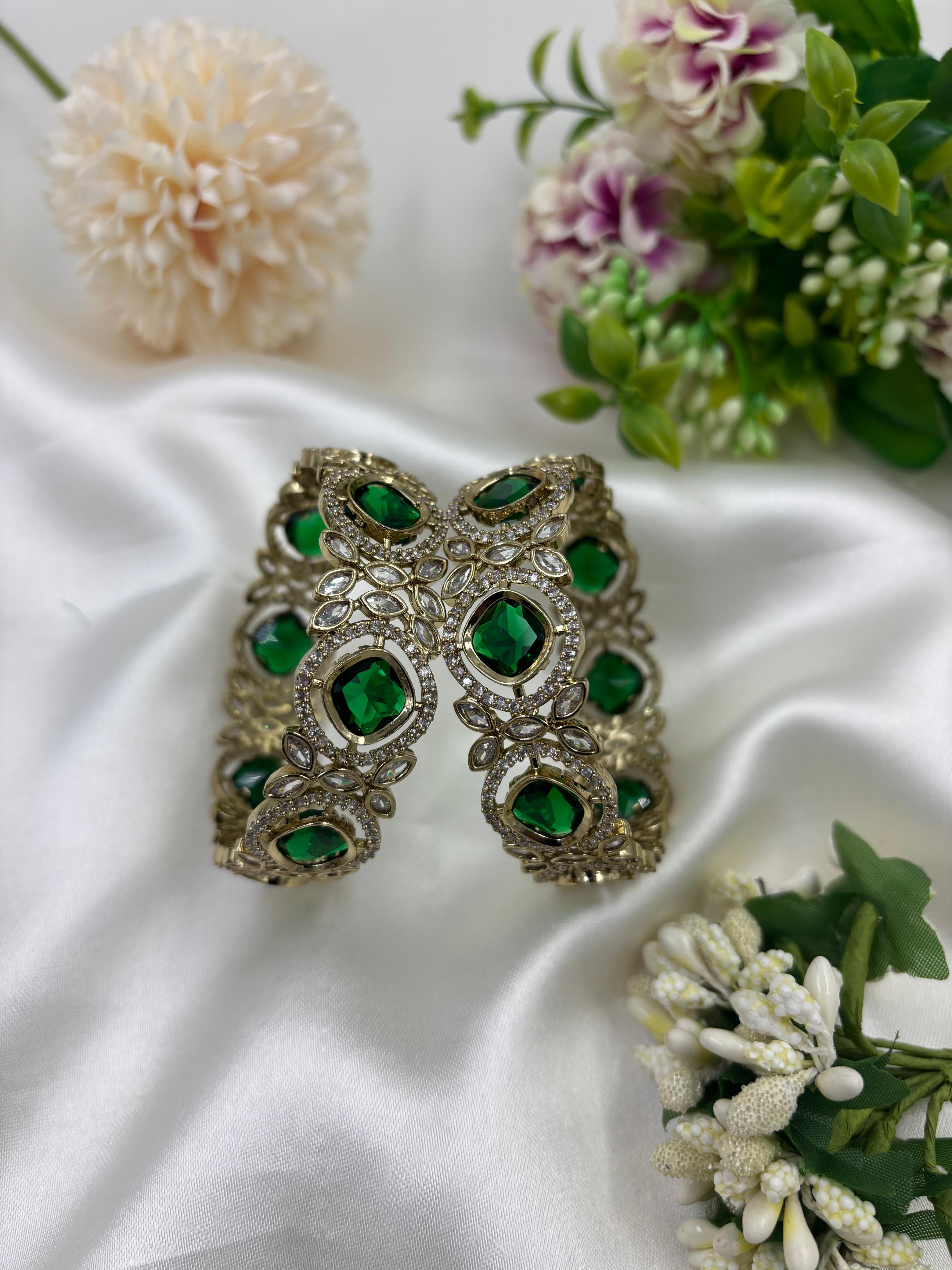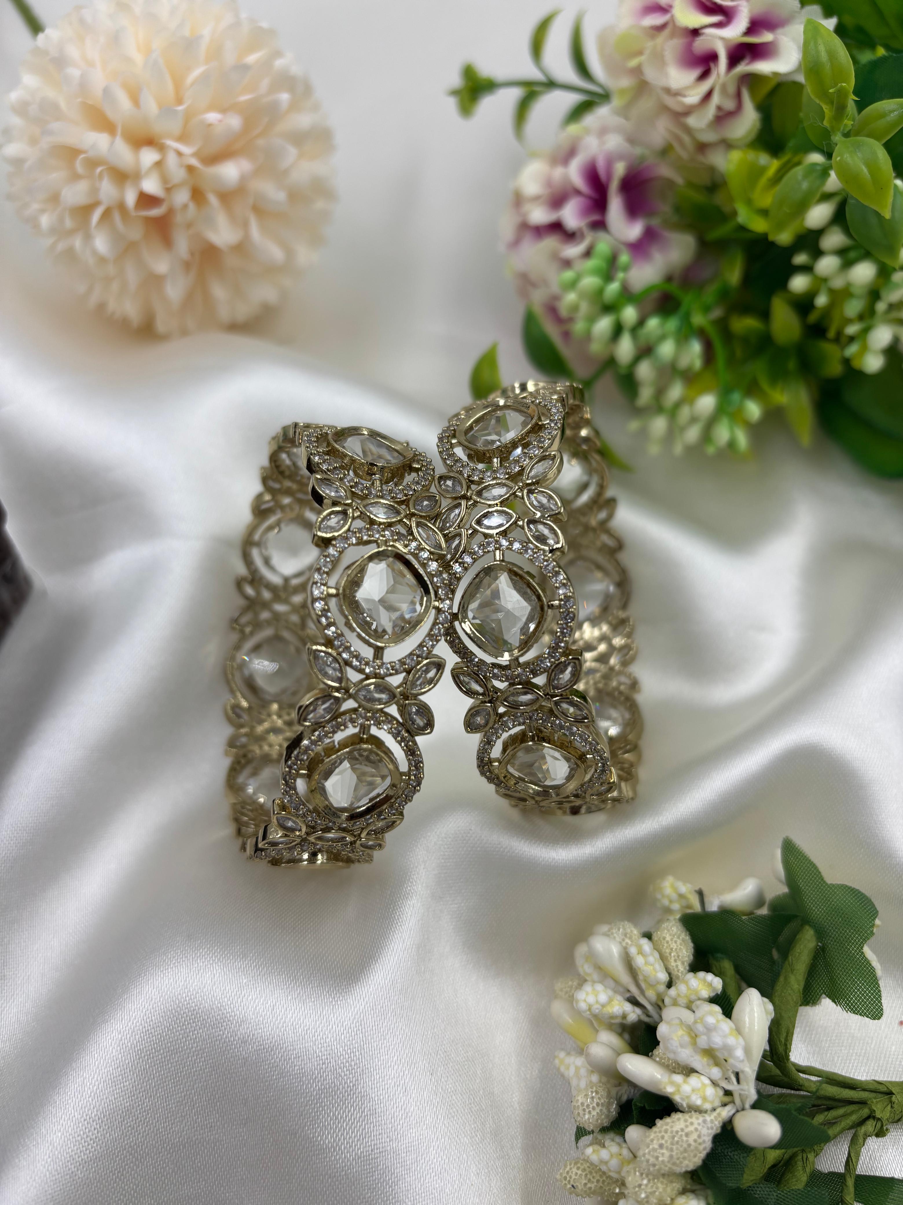 Elevate your style with our Premium Victorian Bangles Kada, designed with a perfect blend of royal elegance and modern sophistication. Adorned with sparkling American Diamonds (AD) and intricate Victorian craftsmanship, these kada-style bangles are the ultimate statement accessory for every occasion.