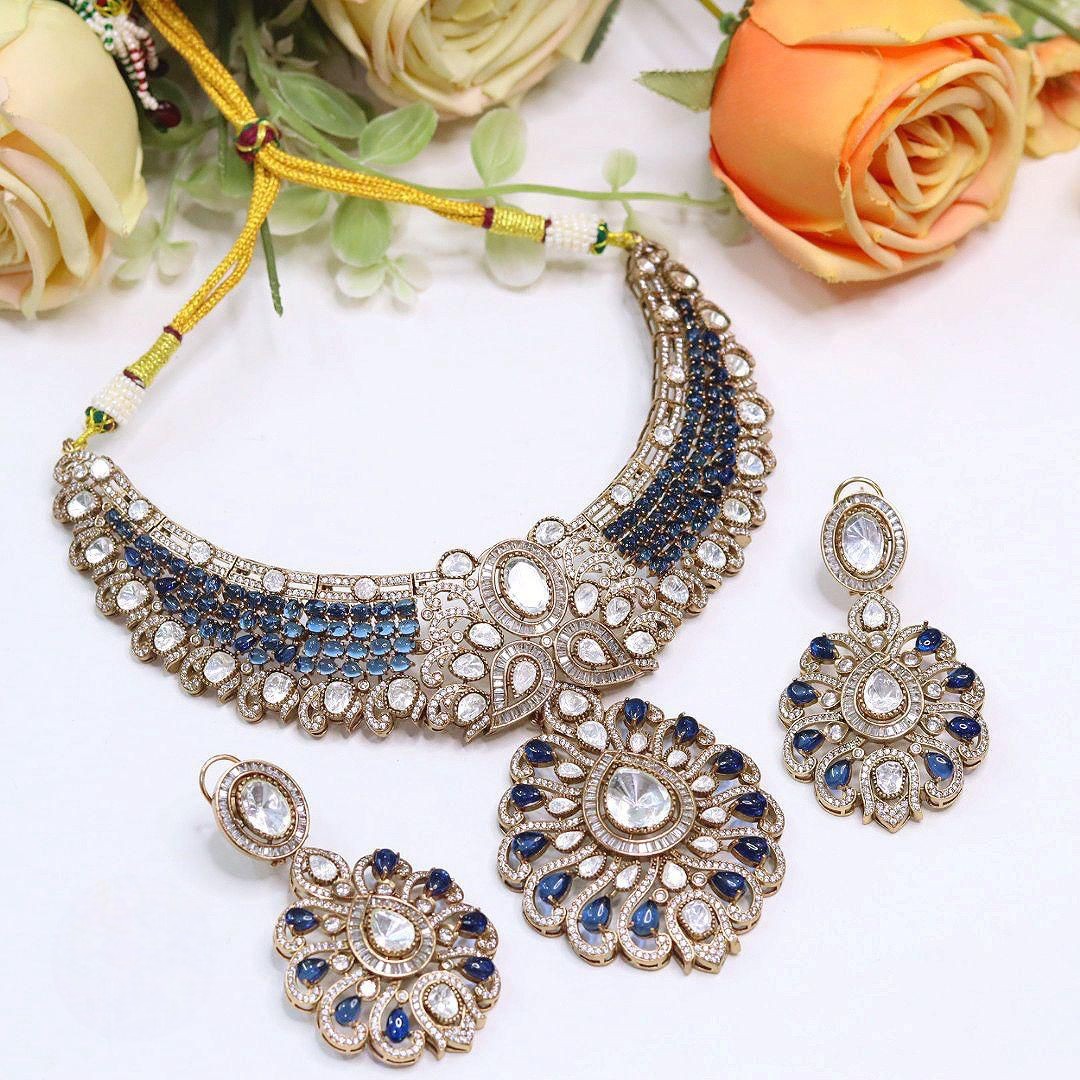 Make a royal statement with this Stone Kundan Bridal Necklace Set, exquisitely crafted in a luxurious gold-tone finish. Featuring rich pink stones paired with dazzling white Kundan detailing, this traditional Indian jewelry set reflects timeless elegance and bridal charm.